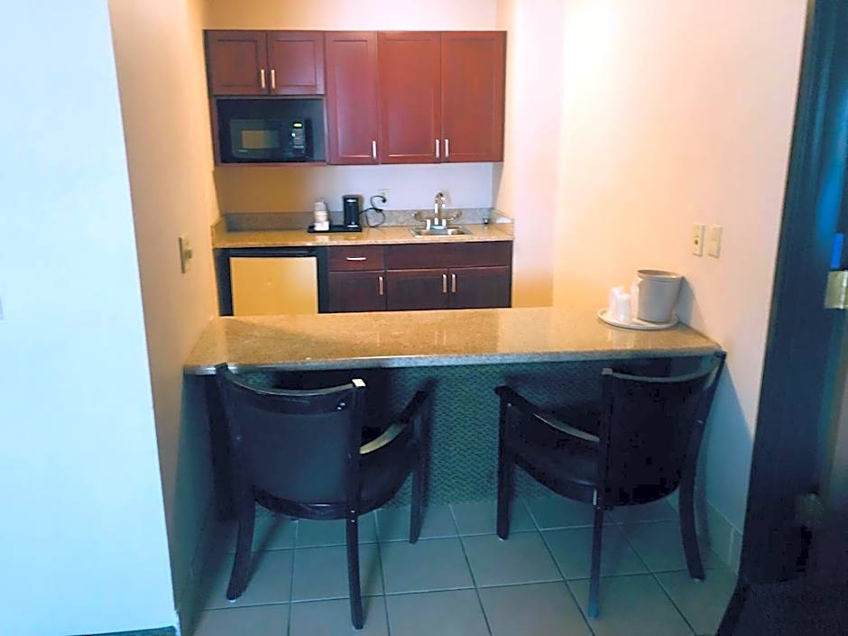 The suite's kitchenette is available for cooking and storing food. The suite has a terrace.